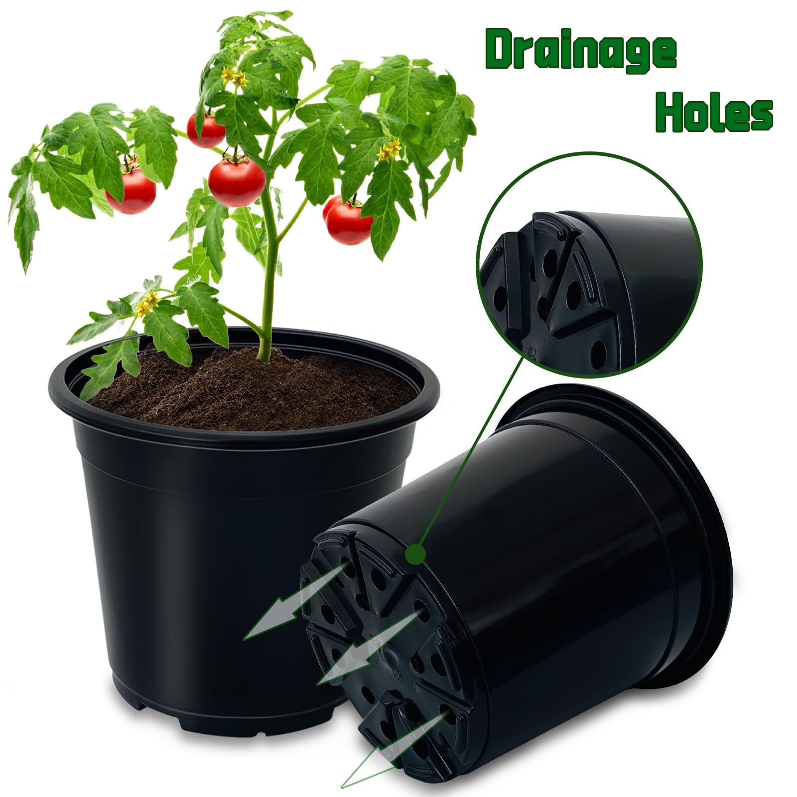 Plant Pots,Black Plastic Pots with Drainage Holes