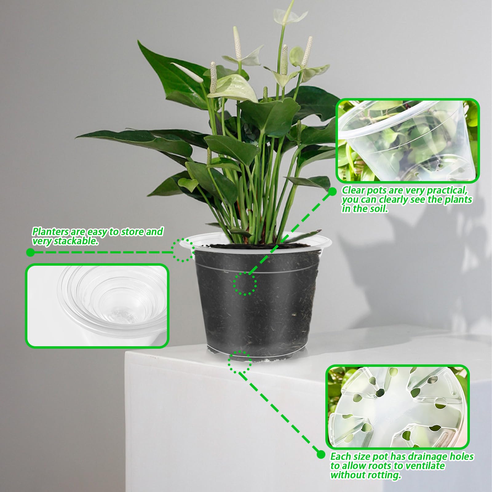 Experience the joy of watching your plants grow and thrive with these clear,well-designed pots that bring a touch of nature to your home!