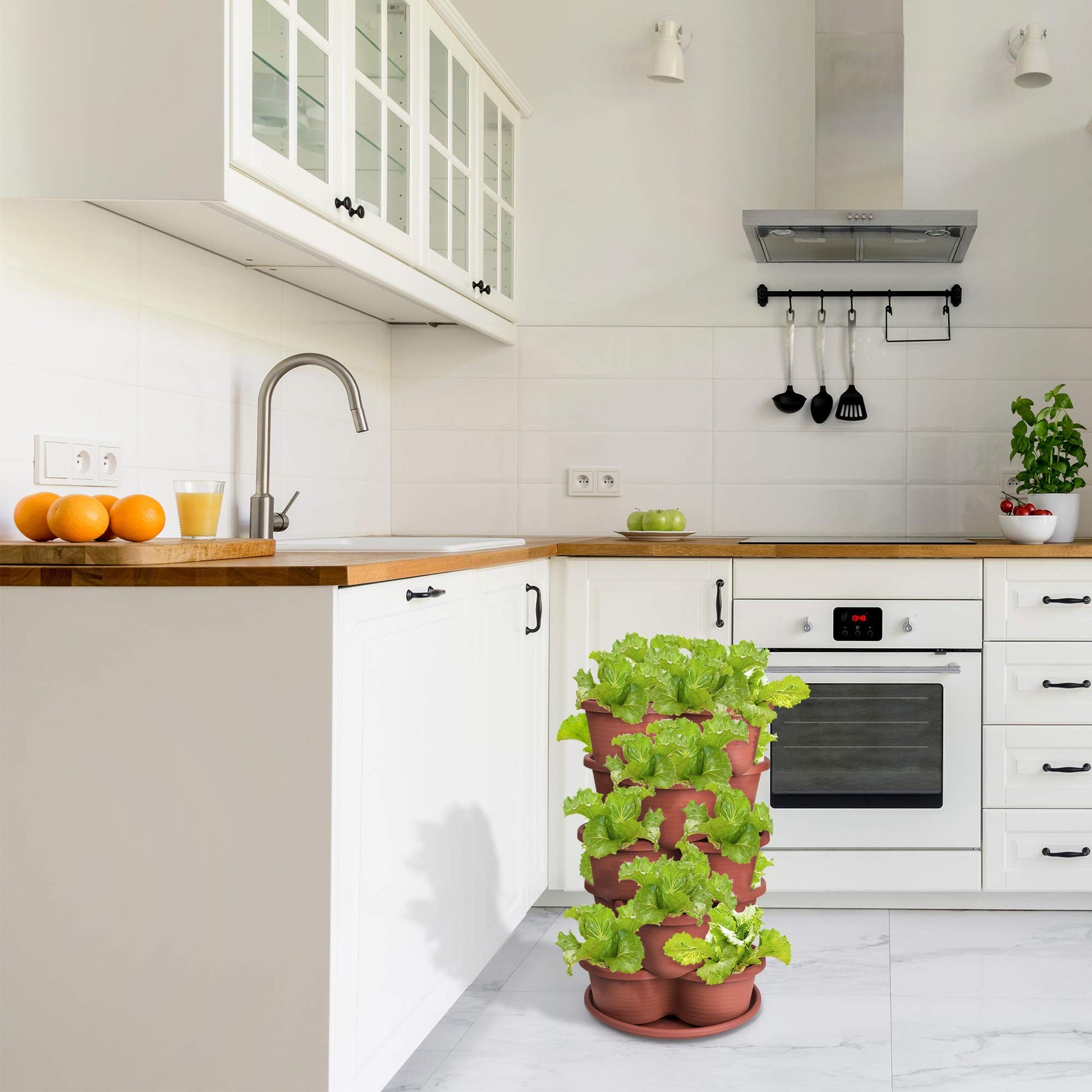 - Indoor/Outdoor Planters - This includes one Vertical Planter that are made of 5 stackable pots that can hold up to 15 different plants with green stalks vertical planter, garden tower 2 with aeroponic tower