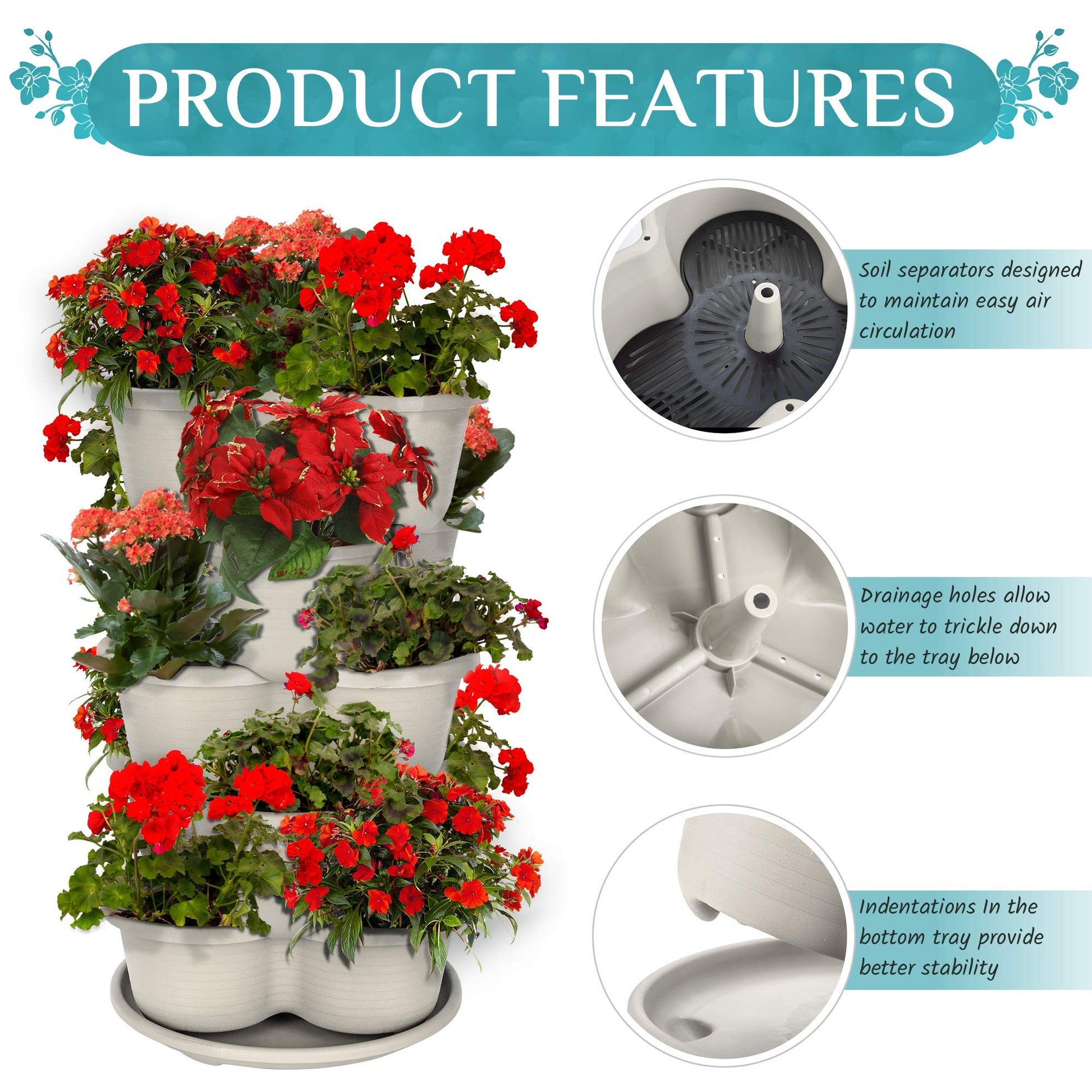 - Great Starter Kit - Our planters serve as a great starter set to plant. Our planter pots are designed to support all your planting and gardening efforts. They’re super lightweight, and extremely durable a stacking planters strawberry planting pots