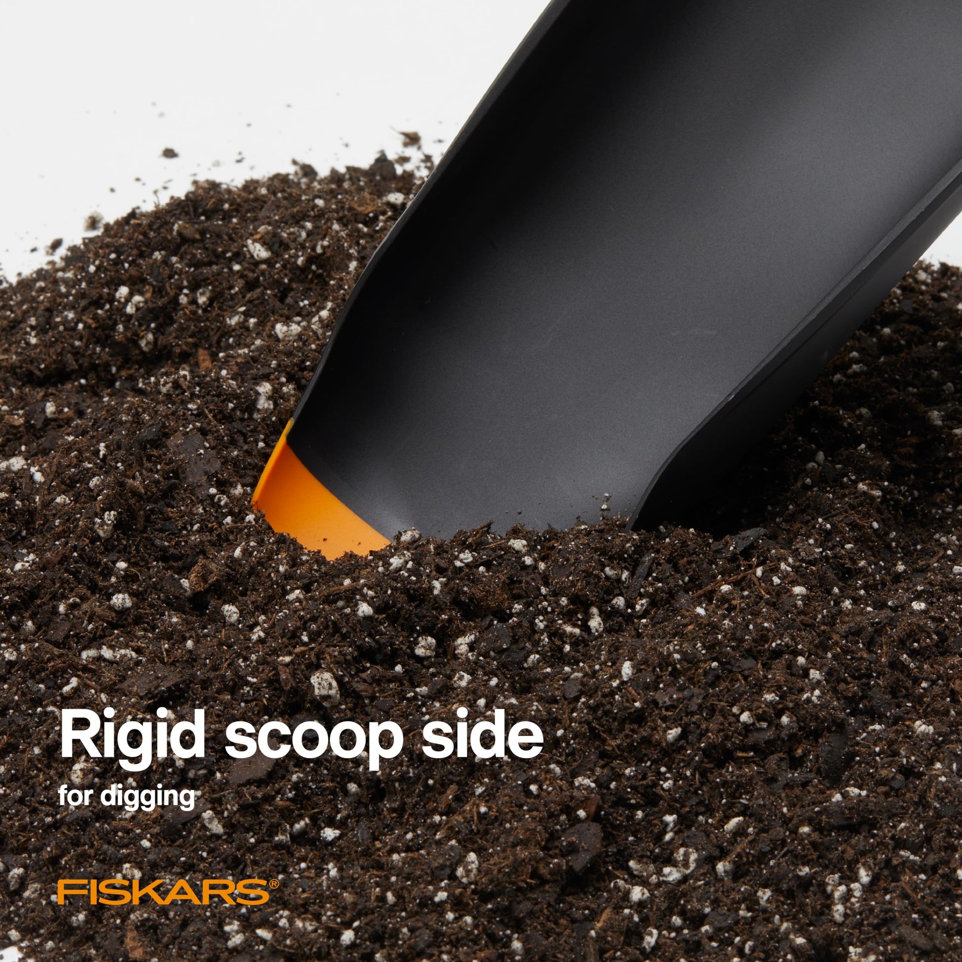 - Use the Fiskars Planting Scoop and Brush Set to dig, re-pot, transplant and clean up loose planting materials when gardening indoors or on patios or balconies