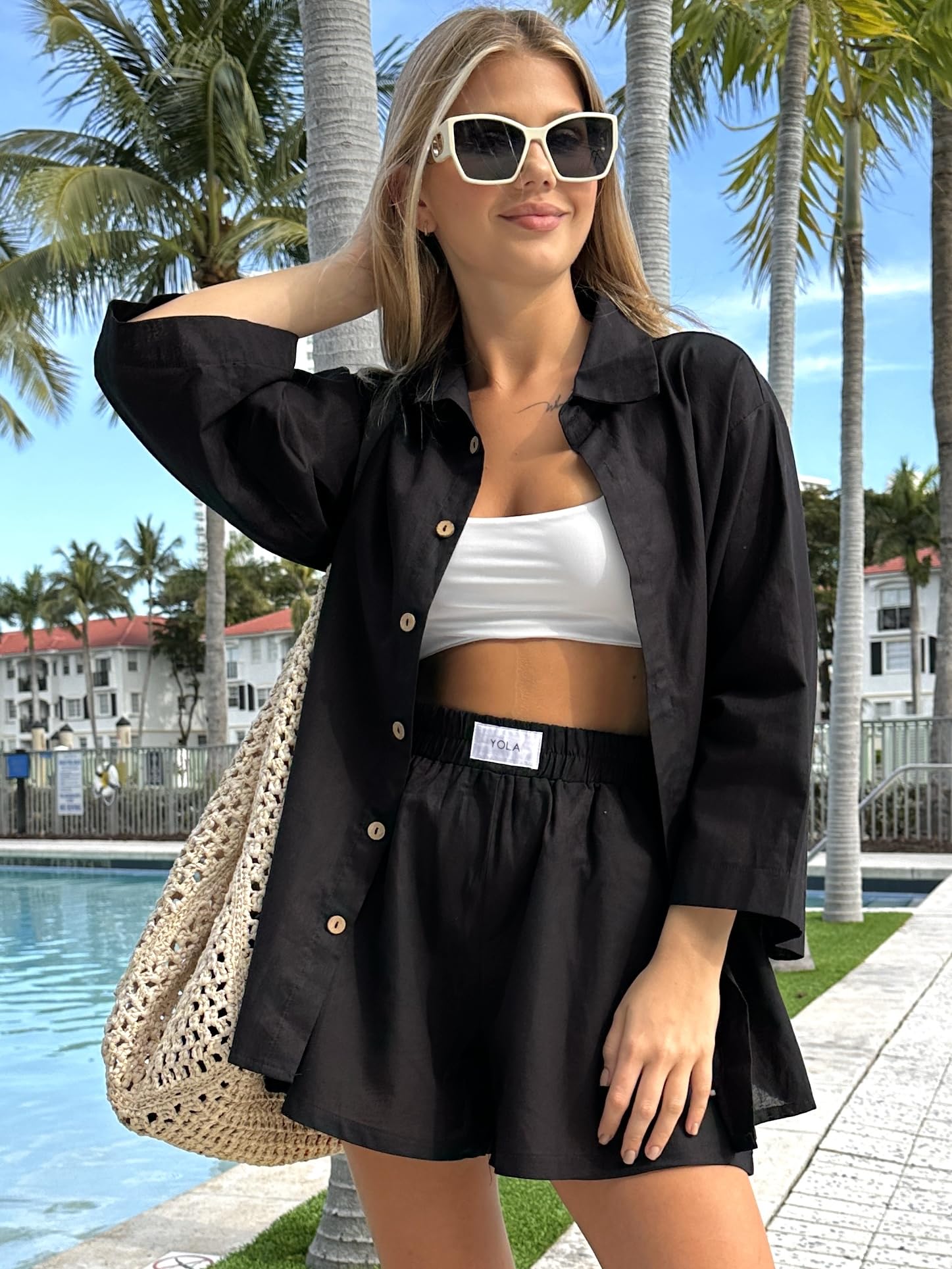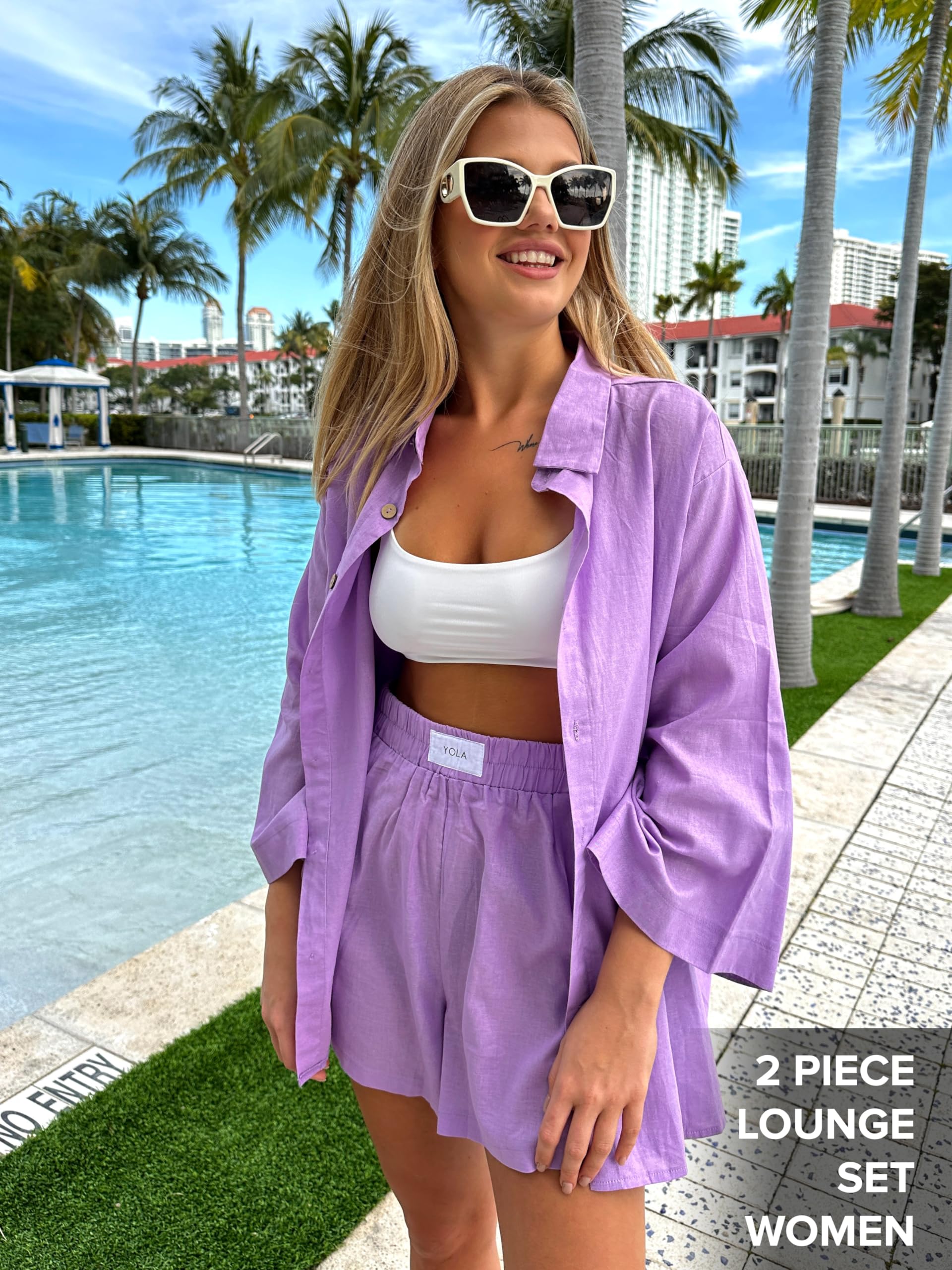 Thanks to the lightweight yet durable nature of linen and cotton, this set is a great choice for year-round wear. It works well for summer due to its airy texture, while layering it with outerwear makes it suitable for cooler seasons. Whether you're heading out for errands, relaxing at home, or going on a vacation, this 2-piece set keeps you stylish and at ease.