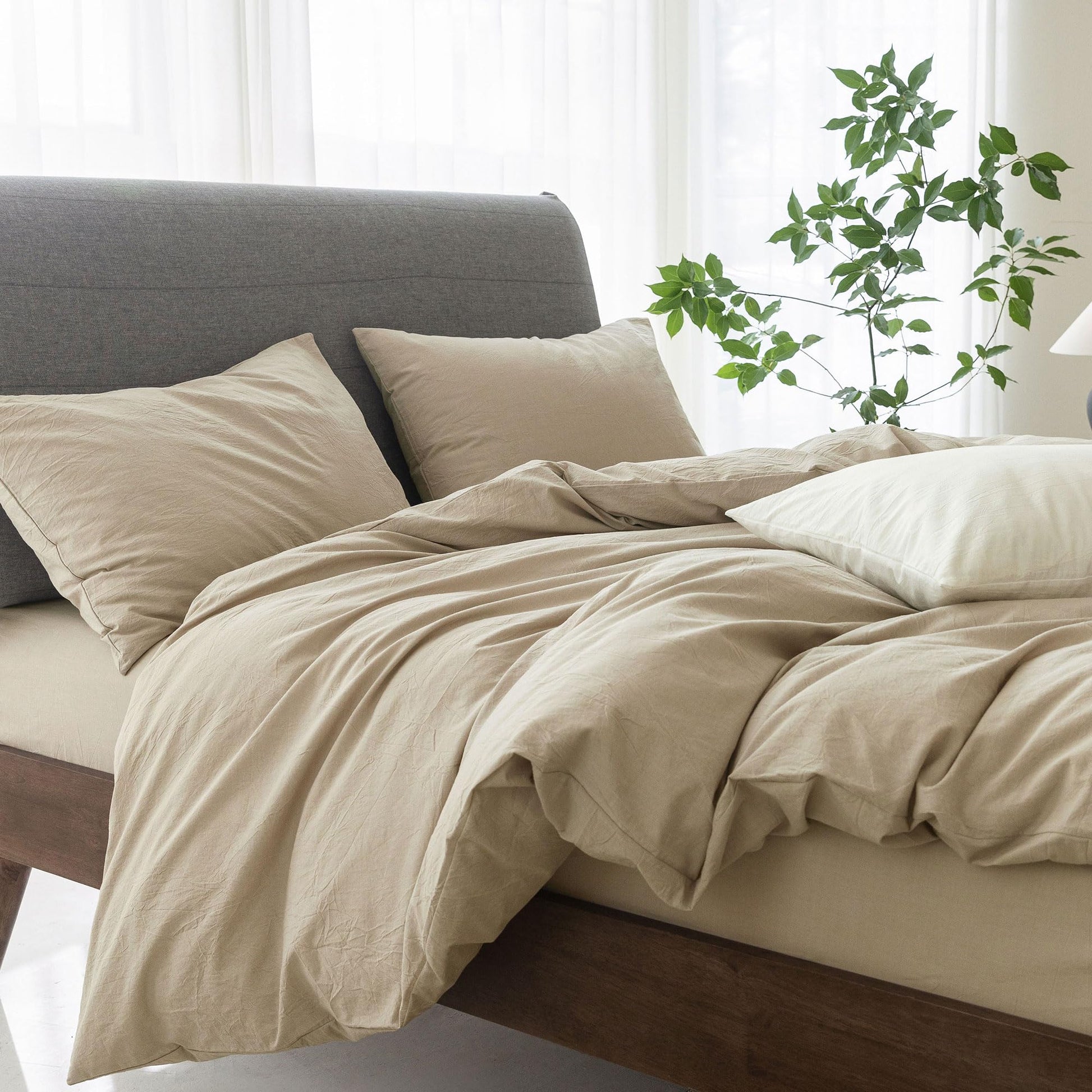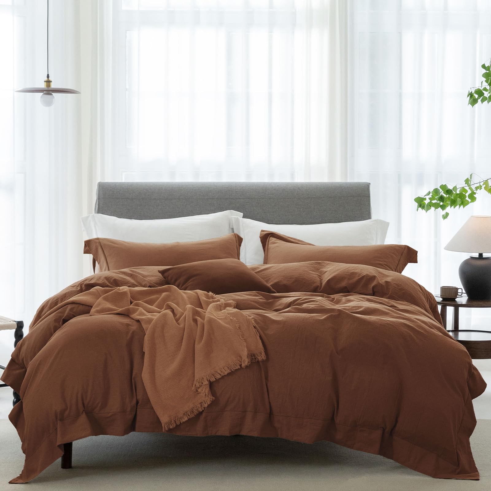 - Material: 100% washed cotton with wonderful linen texture, natural wrinkles, pleasant touch, simple solid color design and multiple colors and sizes can be matched with a variety of bedrooms.Ideal for usage all year round.Special technology is not easy to fade.Softer after several washes.