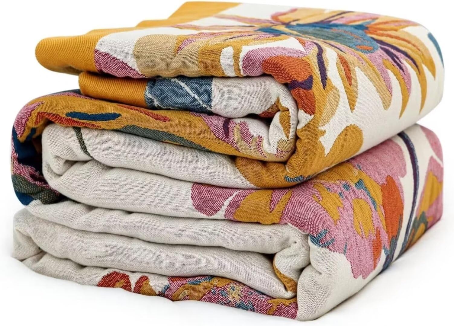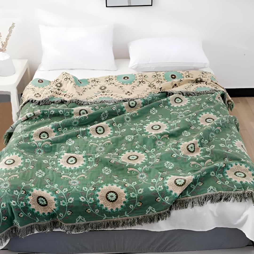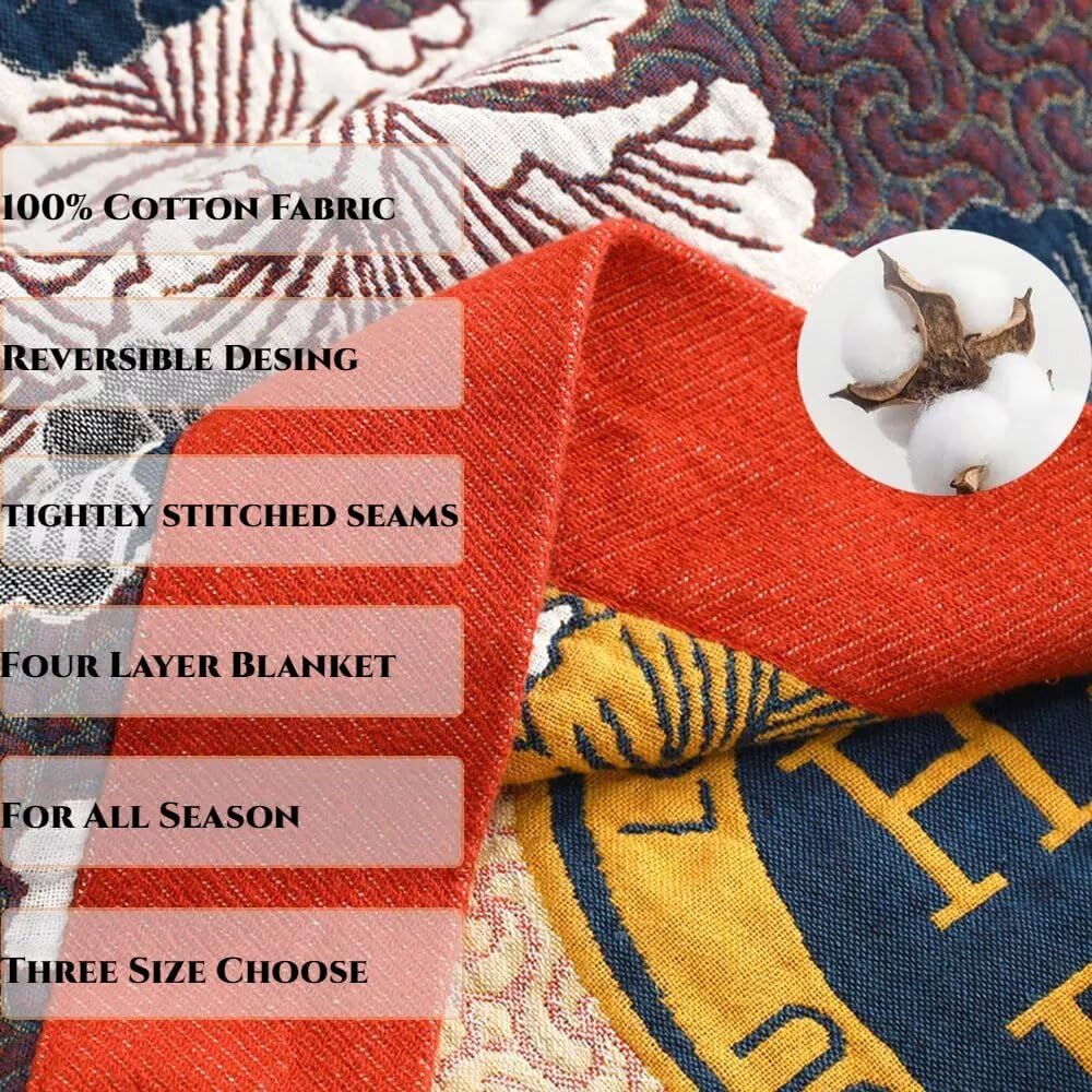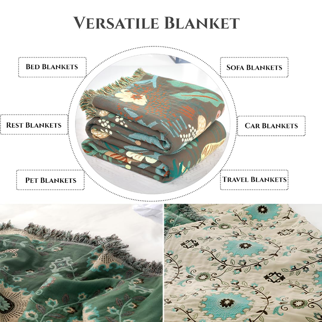 - Ultra Soft&Cozy : This double side pattern boho throw blanket made from 4 layers of 100% cotton, which has a softer and fuffy touch,warm, skin-friendly and breathable.Measuring 60W"x80L" and weighing 2.2 lbs(1000g), perfect for all season blanket.