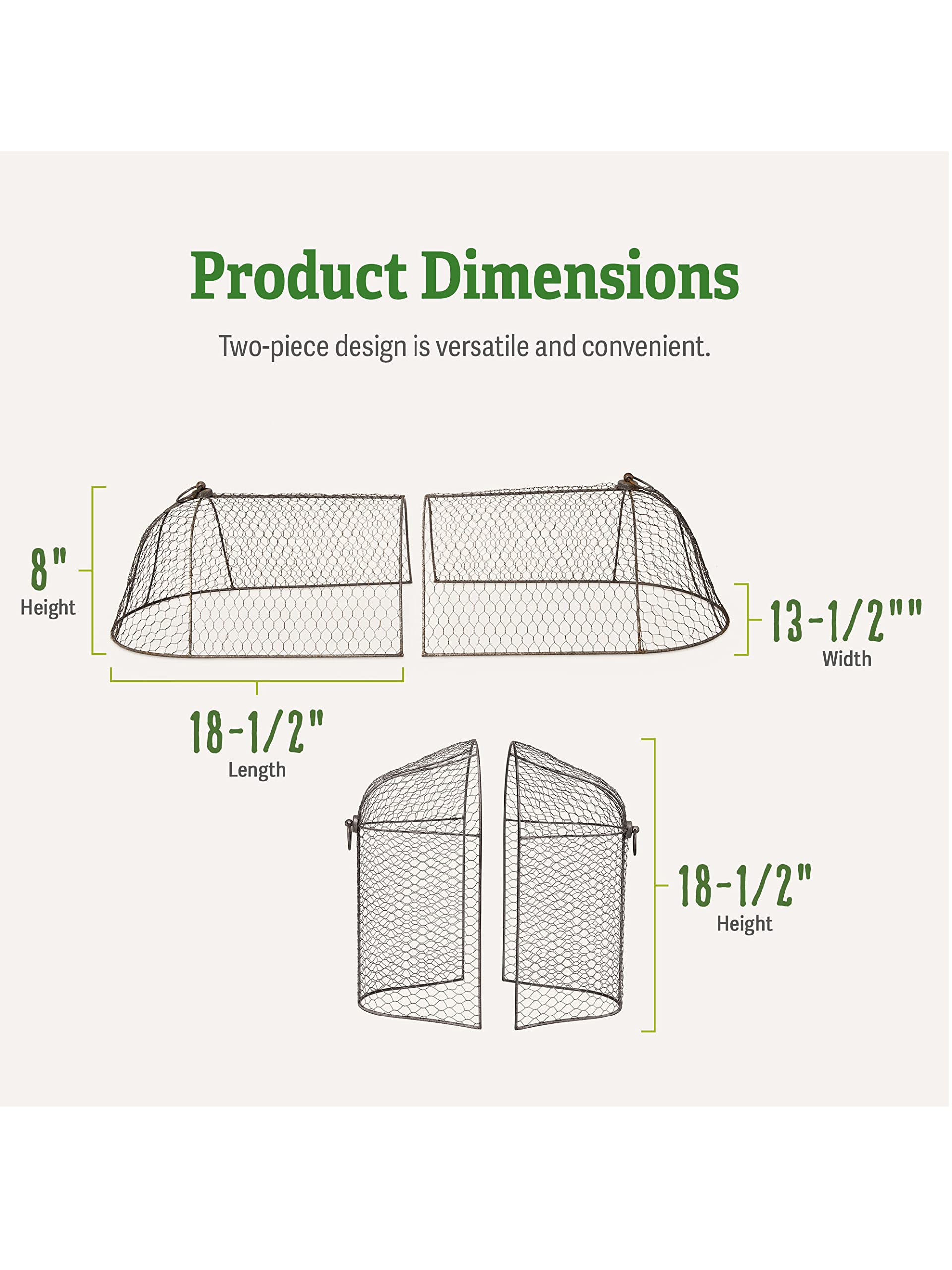 - PRODUCT DETAILS: Heavy Duty Chicken Wire Cloche Plant Cage Protector Bell Shaped Garden plant cover made with tough quality galvanized metal materials for strong stability and built to last for years. A must-have garden fence animal barrier for young plants. Dimensions: 16" in Diameter x 12-1/2" Height