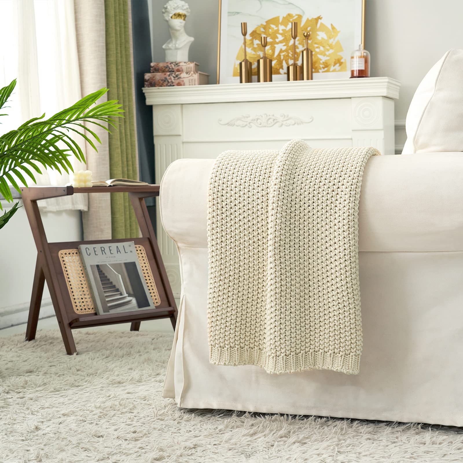 - MODERN + CLASSIC: Woven into a luxurious chunky knit, 100% natural cotton yarn fibers in beige support a neutral finish that complements farmhouse chic home décor, shabby chic home décor & more.