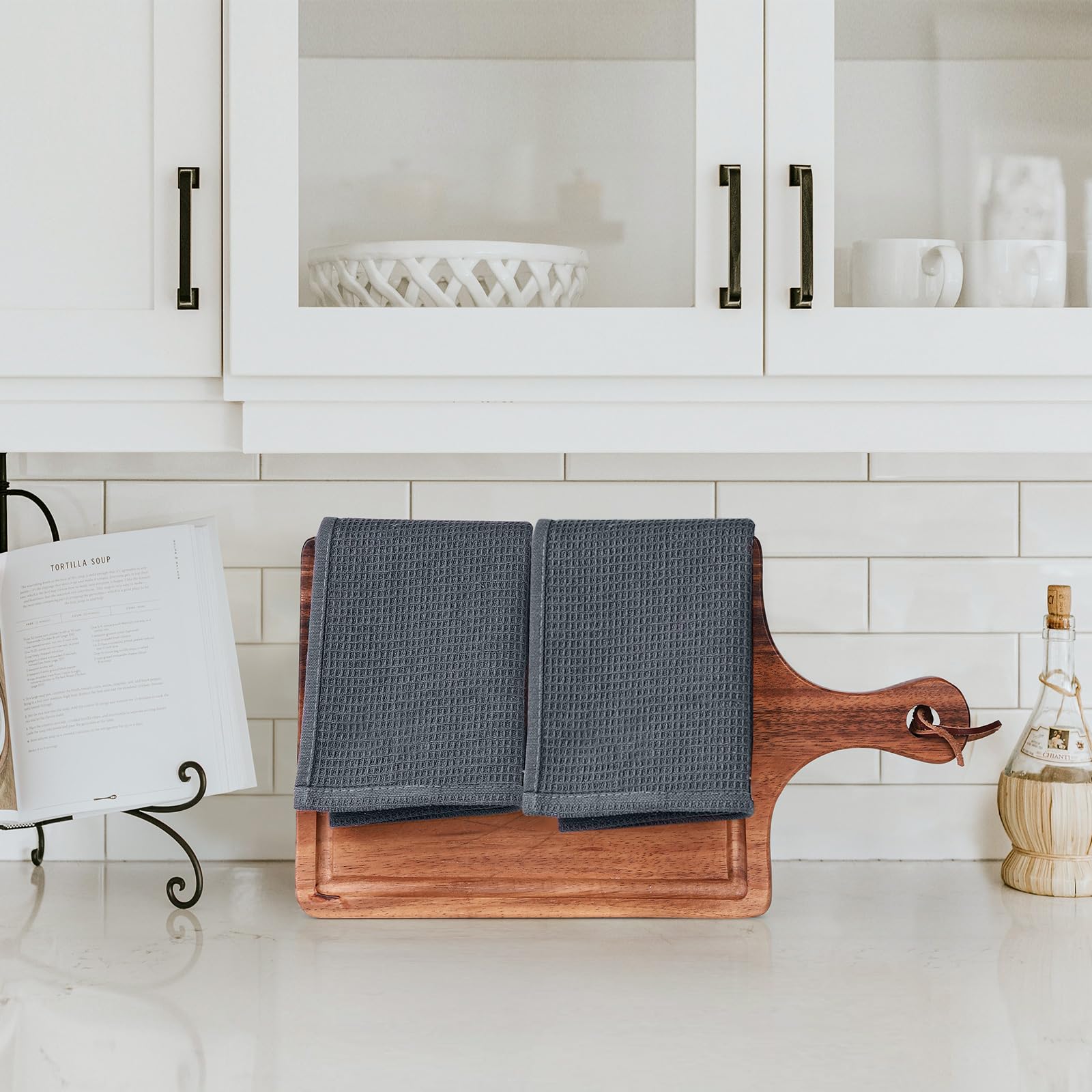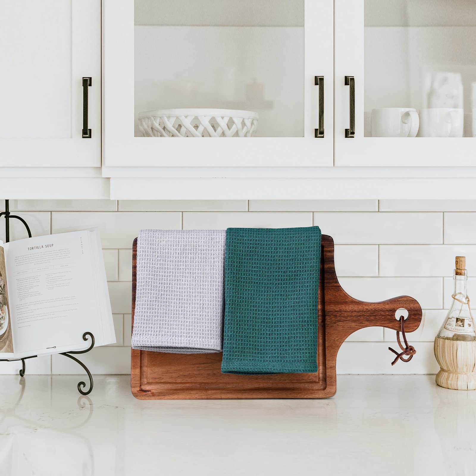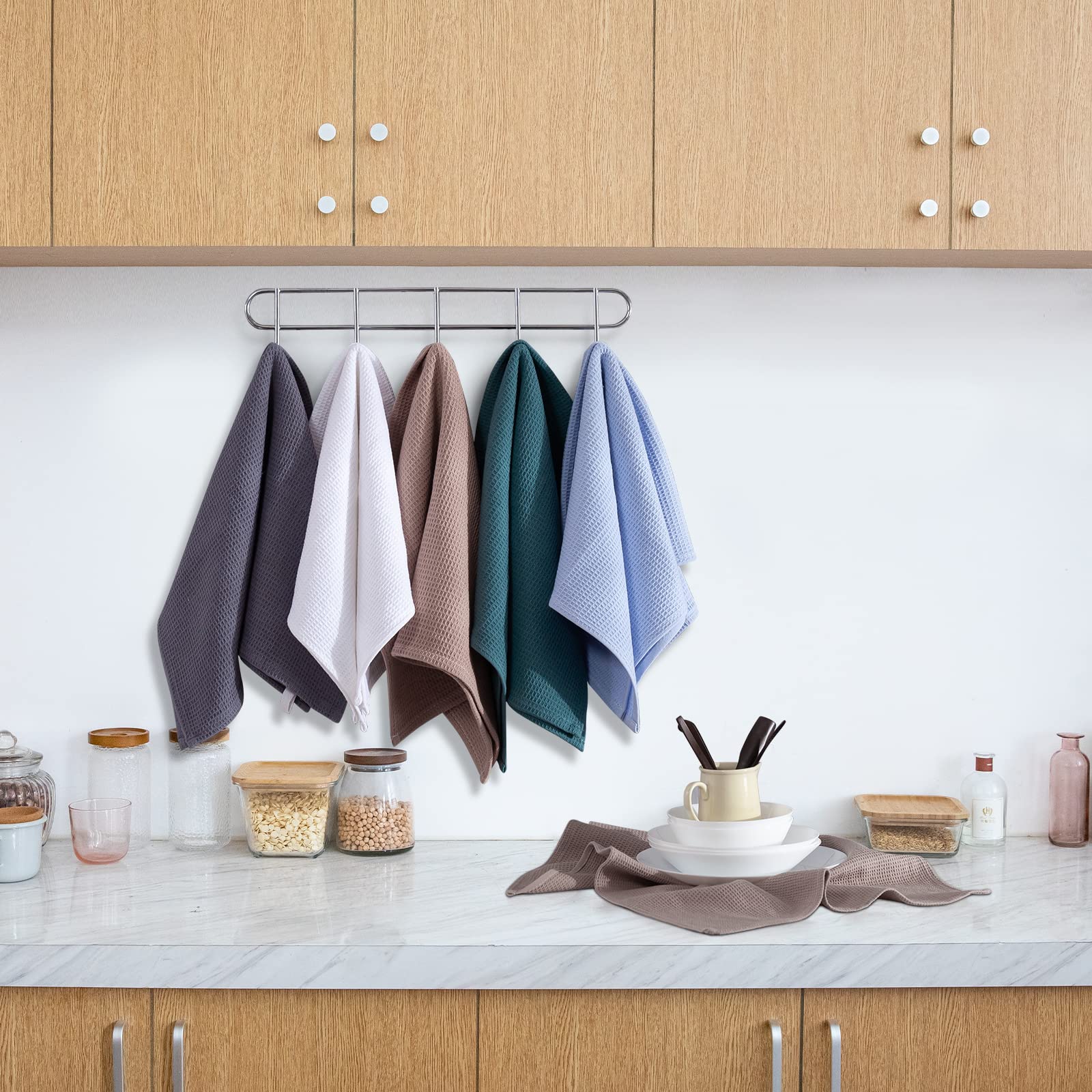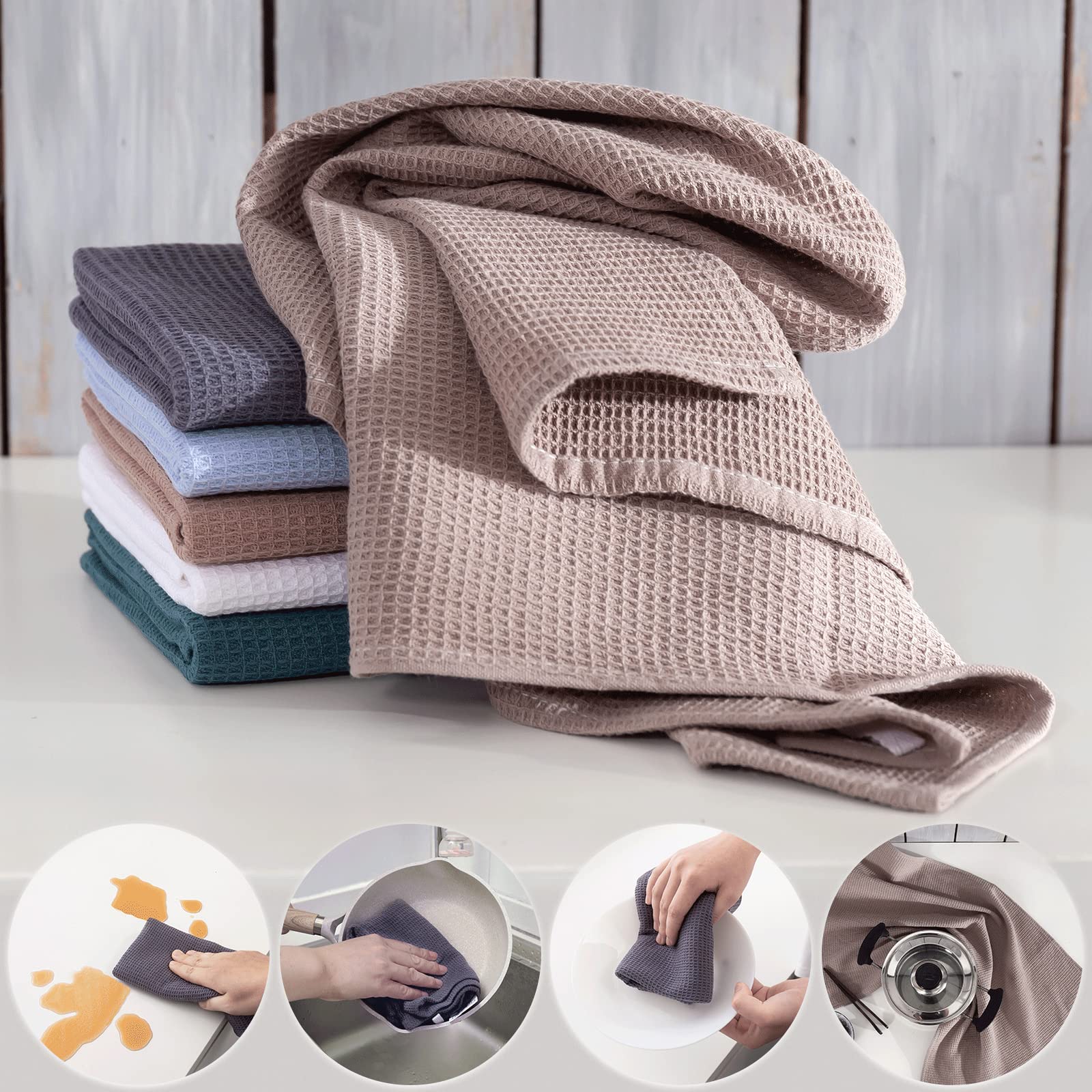 - Absorbent & Quick Drying Dish Towels for Kitchen - Hollow honeycomb weave design makes the kitchen dish cloths lightweight, breathable, super absorbent and dry quickly. These waffle kitchen towels is perfect to tackle all of your dryings, wiping and cleaning kitchen tasks without leaving streaks, low lint and scratch-free.