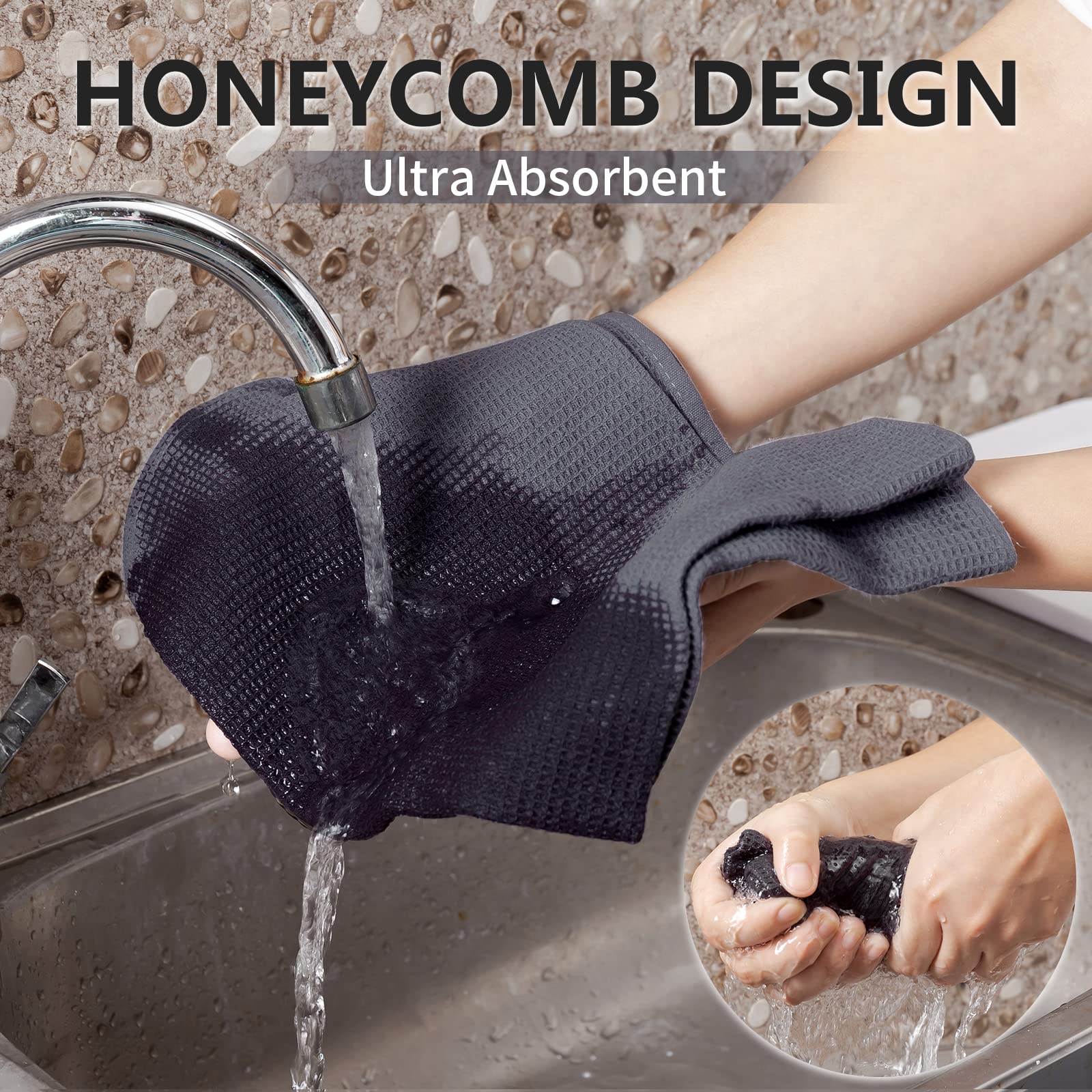 - Super Absorbent We have newly upgraded the hollow honeycomb weave to make this kitchen towels light, super absorbent and dry quickly, perfect tackle for kitchen cleaning and wiping