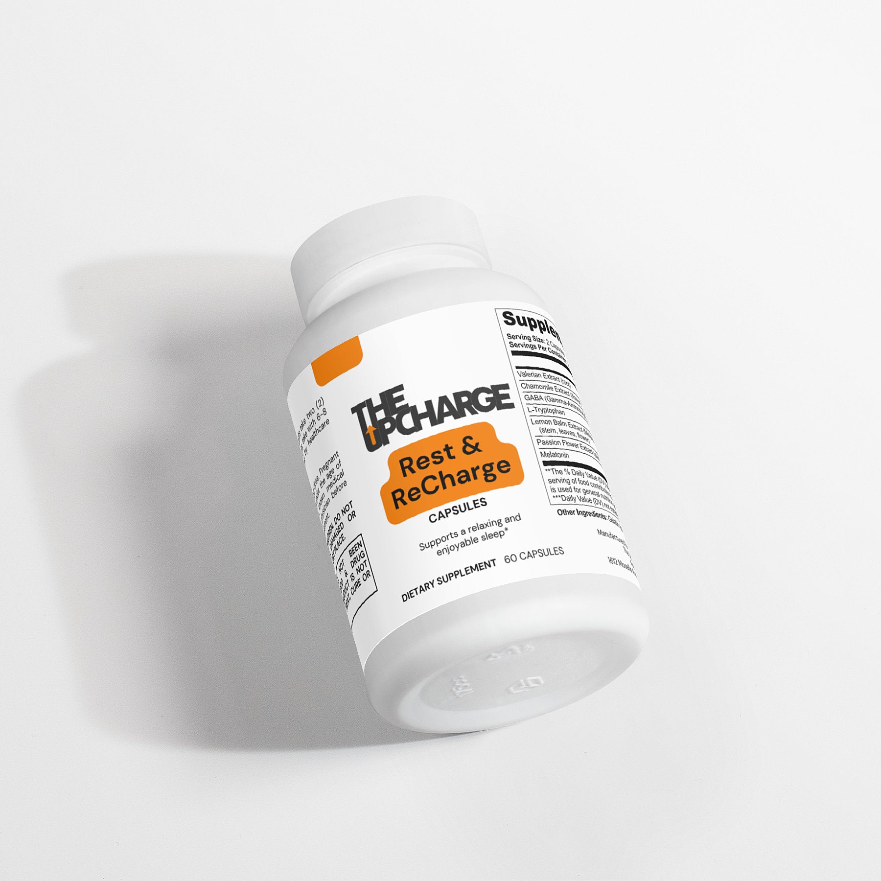 Ingredients: Valerian Extract (root); Chamomile Extract (flower); GABA (Gamma-Aminobutyric Acid); L-Tryptophan; Lemon Balm Extract (Melissa officinalis) (stem, leaves, flower); Passion Flower Extract (stem, leaves, flower); Melatonin
